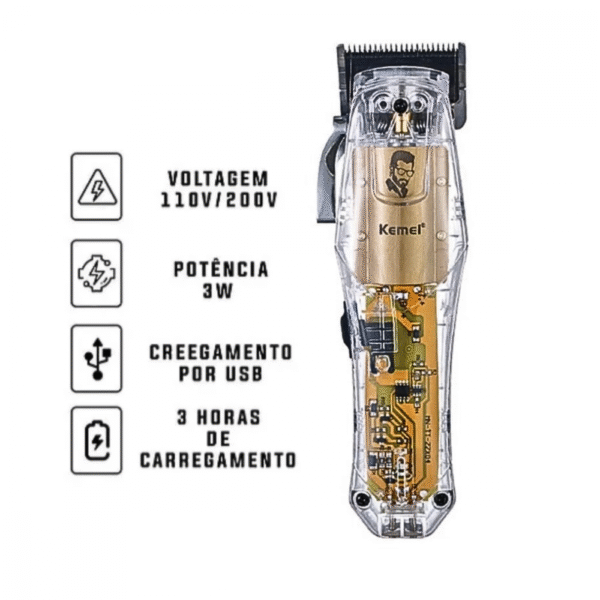 Maquina De Cortar Cabelo Transparente Bivolt Kemei Ng108