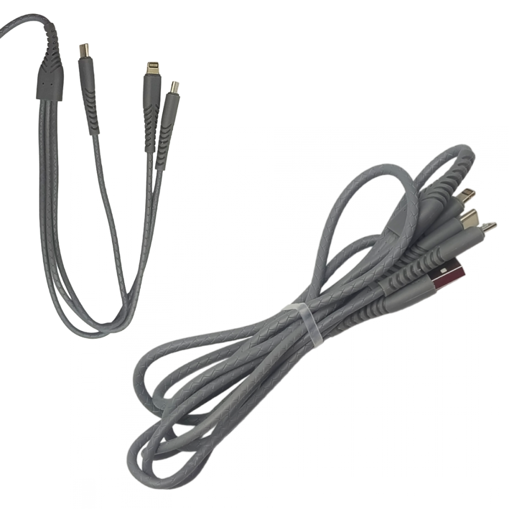 Cabo Carregador 3 in 1 conexão Tipo-C / V8 / Lightning de 1,2m 3.4A