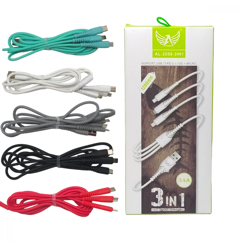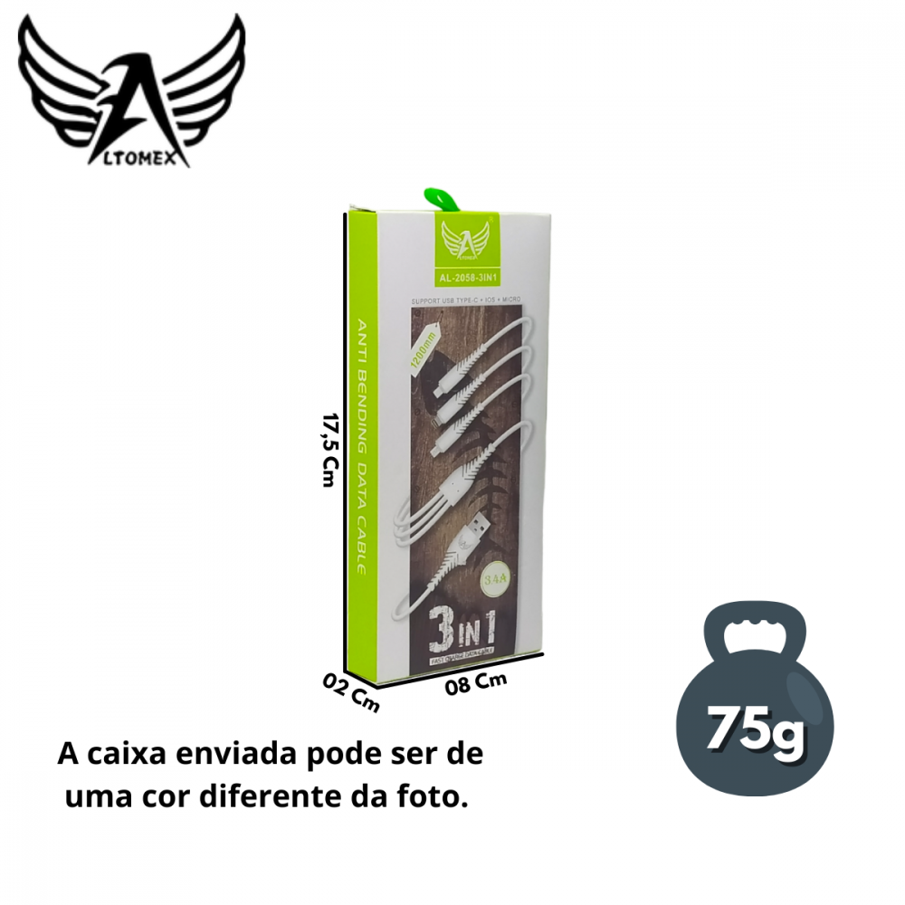 Cabo Carregador 3 in 1 conexão Tipo-C / V8 / Lightning de 1,2m 3.4A Altomex AL-2058