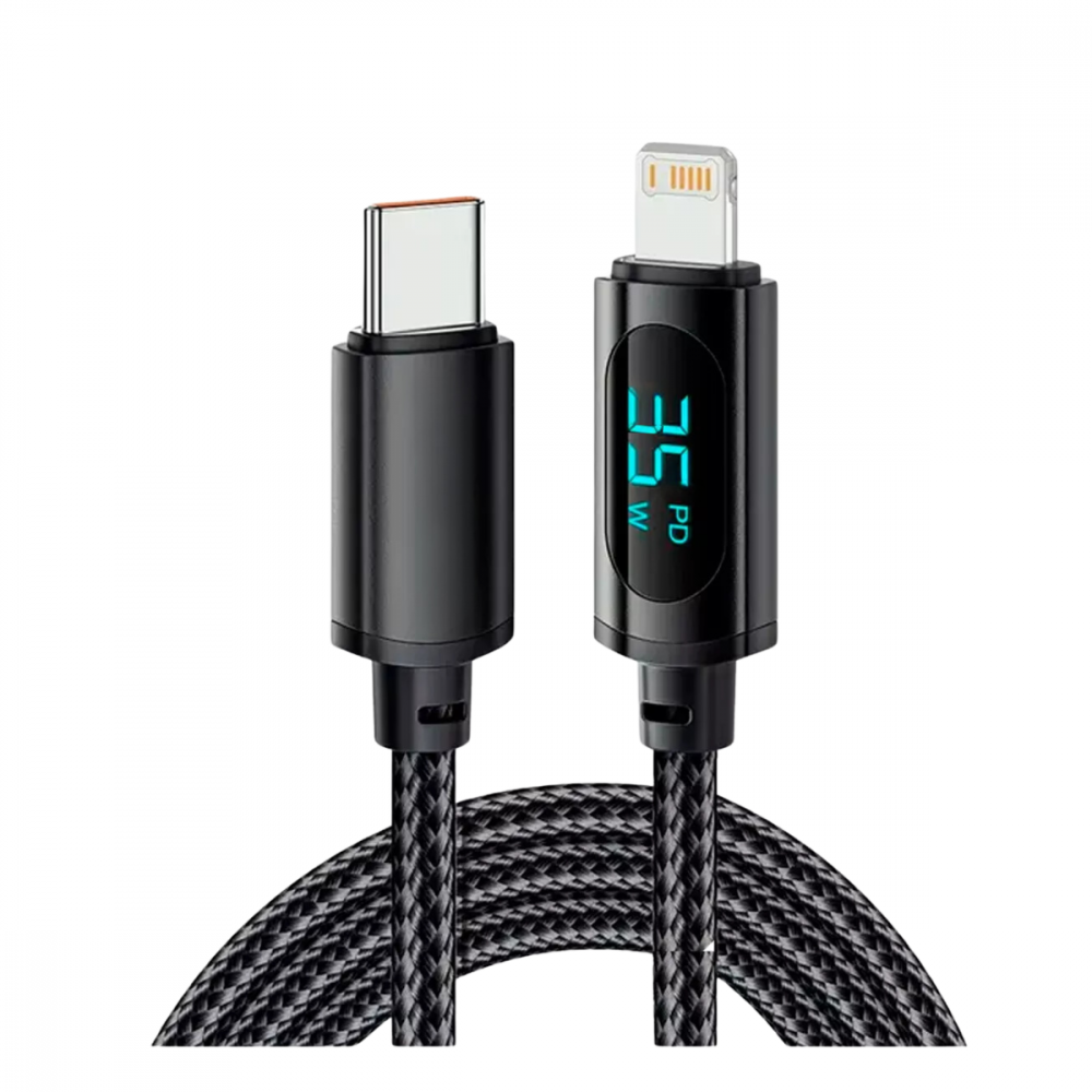 Cabo de Dados 35W TIPO-C / Lightning Indicador Digital Linha Premium Eletromex EL-3115-PD
