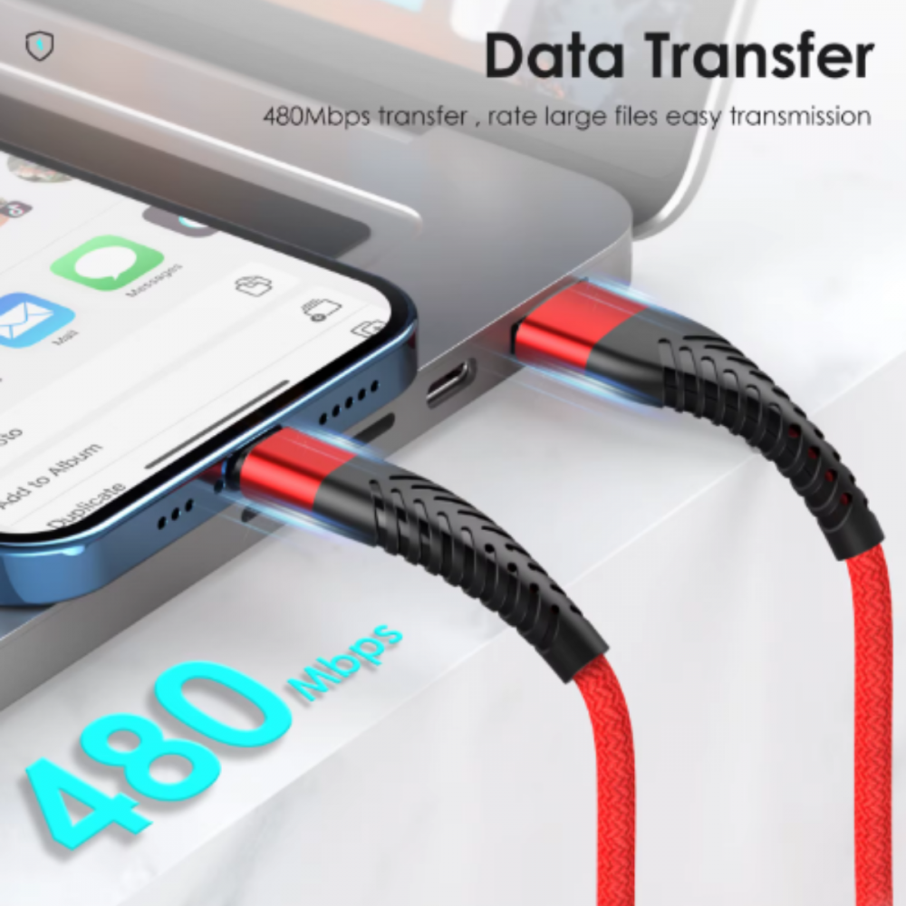 O revestimento de nylon de alta qualidade protege o cabo contra desgaste, dobras e quebras. Sinta-se confiante de que este cabo está construído para durar.