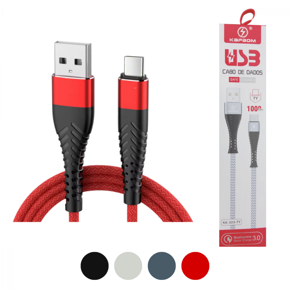 Cabo de Dados TIPO-C 3.0A Quick Charge 1 Metro Kapbom KA-323-TY