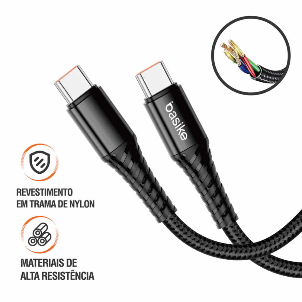 Cabo de dados Tipo C / Tipo C 65W 1 Metro BASIKE BA-CBO106