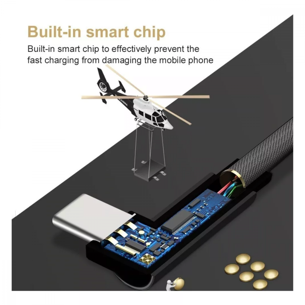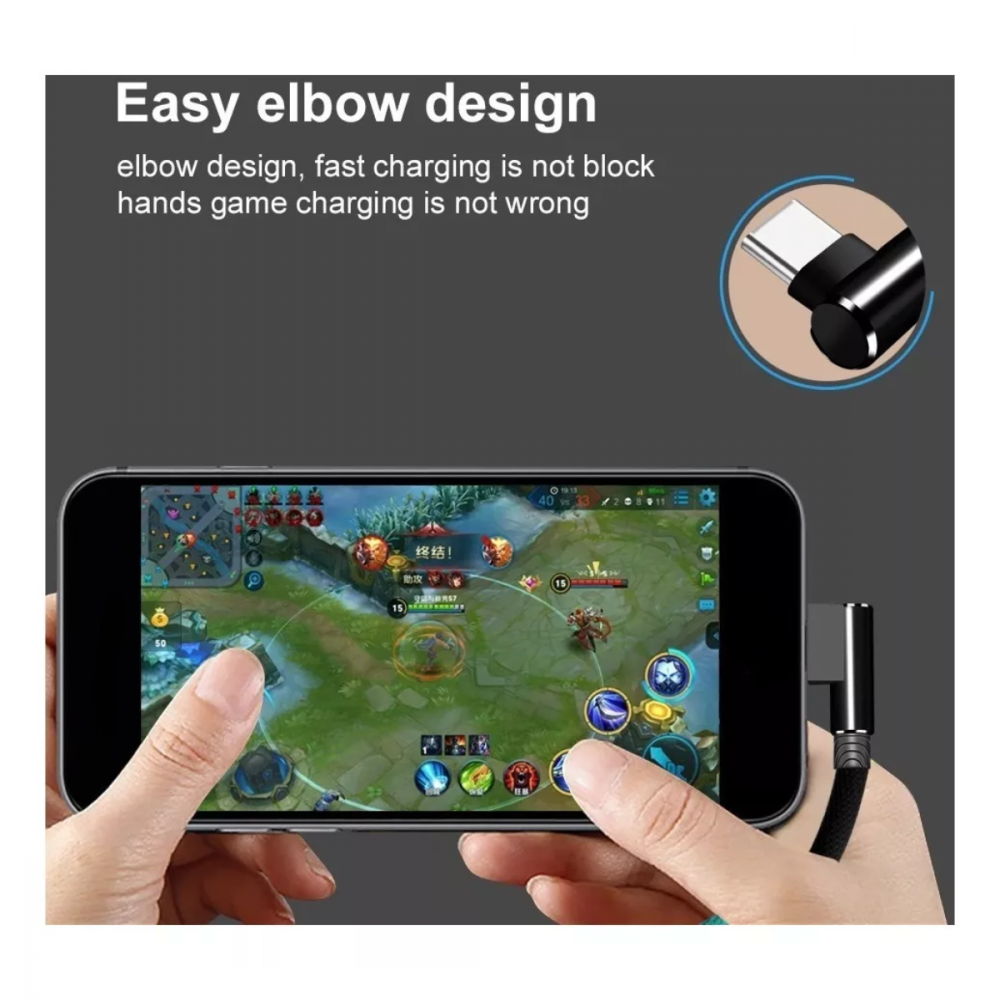 Cabo USB Tipo-C 90° Graus Em L Trançado 1m CBX-U2C11TC
