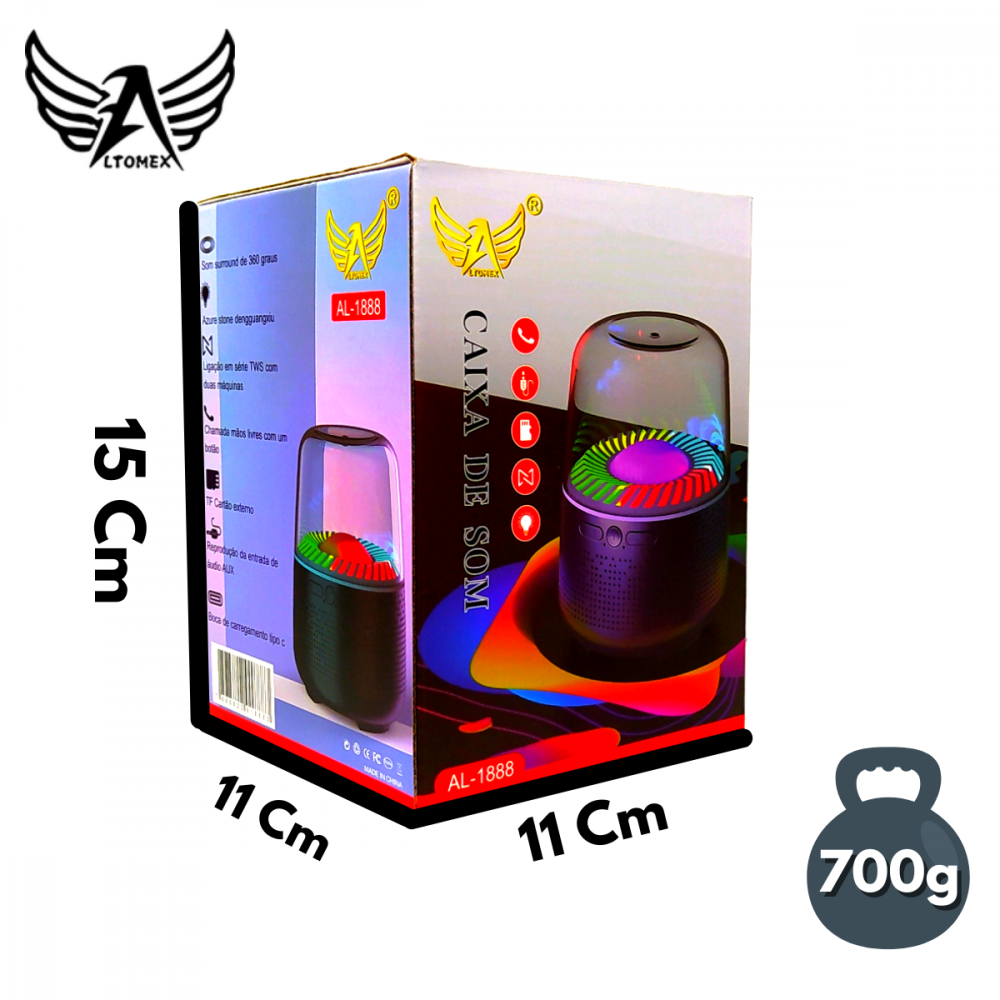 Caixa de Som Bluetooth 15W Iluminação Festa LED RGB Altomex AL-1888