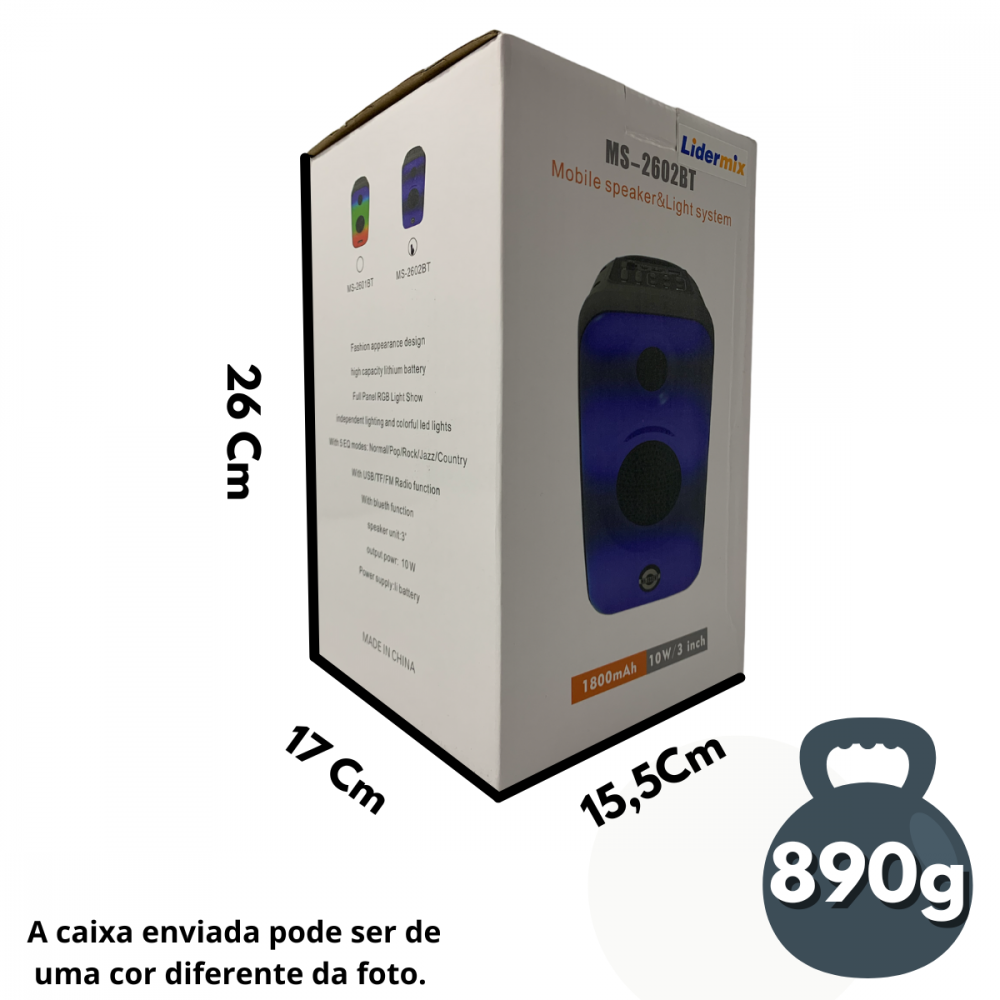 Caixa de Som Bluetooth com LED LiderMix MS-2602BT