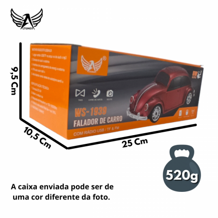 Caixa de Som Bluetooth Formato de FUSCA Altomex WS-1939 (DISPONÍVEL SOMENTE 05 VERMELHO)