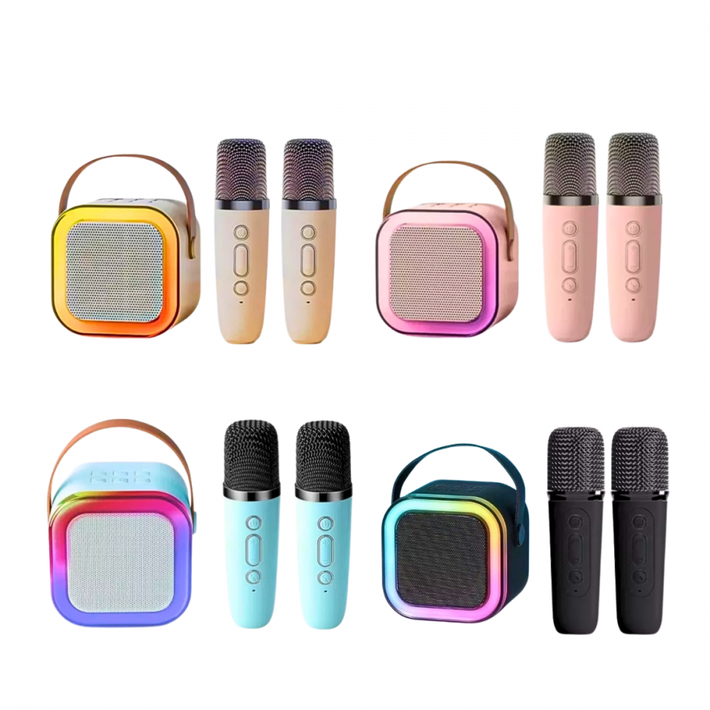Caixa de Som Bluetooth Karaokê Portátil LED Com 02 Microfones