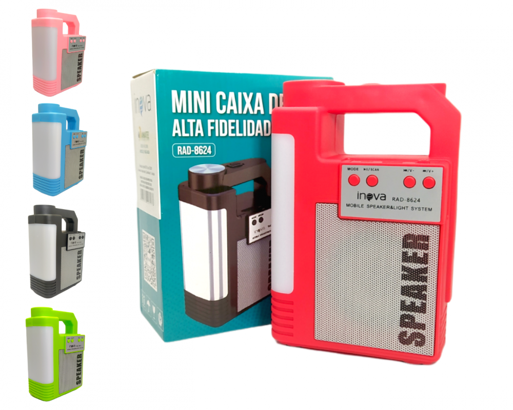 Em até 3x de R$35.66 sem juros Caixa de som Bluetooth LED 6W RAD-8624 (***DISPONÍVEL SOMENTE 15 VERMELHO E 03 VERDE)