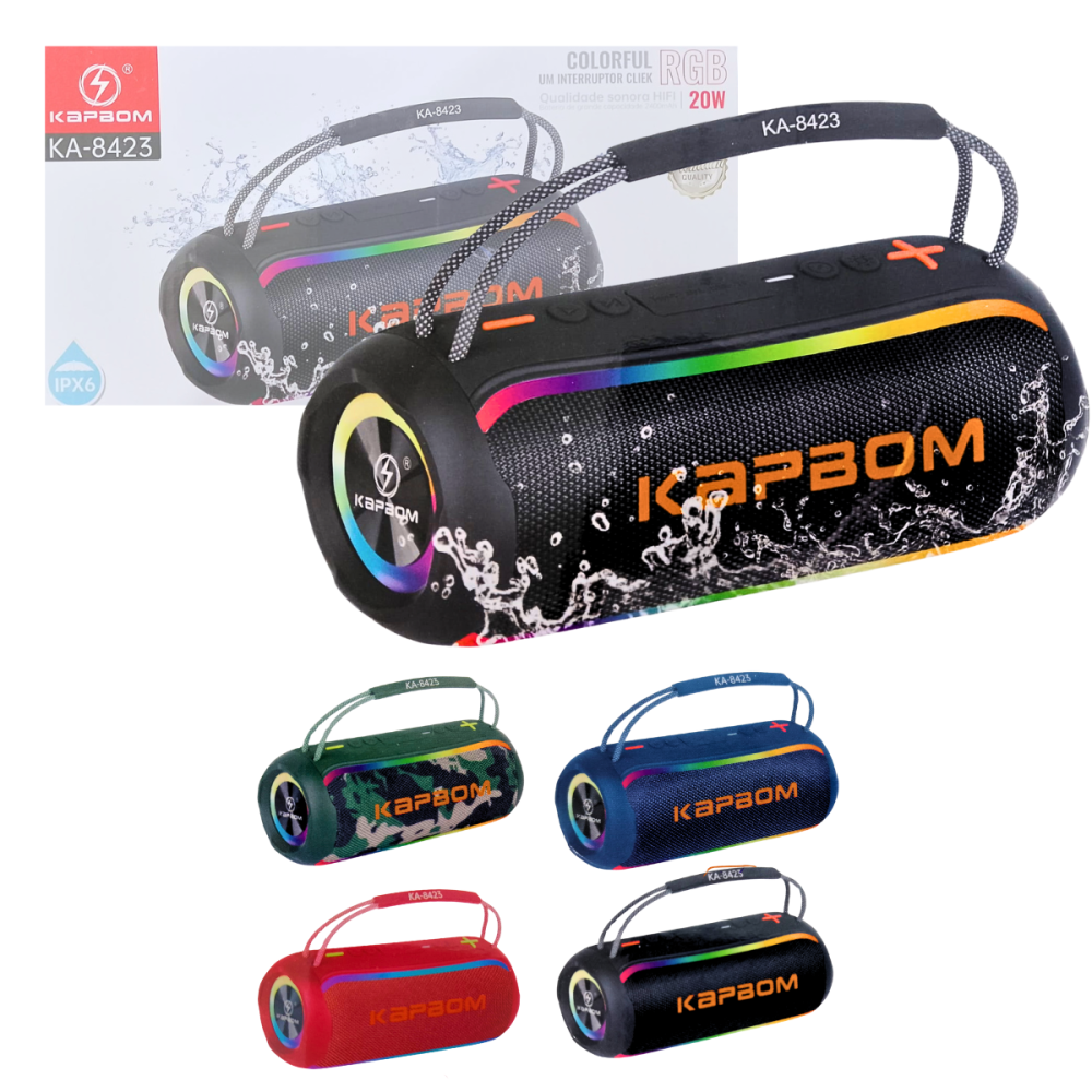 A Caixa de Som Bluetooth KA-8423 é perfeita para levar sua música para qualquer lugar, sem se preocupar com respingos ou chuva. Com 20W de potência e BASS aprofundado, ela oferece um som potente e de qualidade para animar seus momentos.
