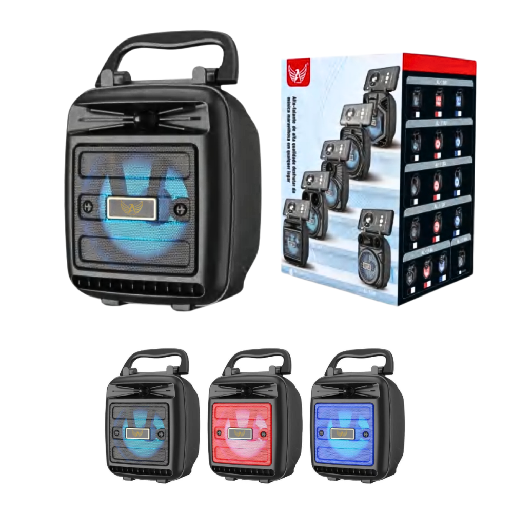 A caixa de som portátil da Altomex possuí alta qualidade, suporte para celular e é ideal para todos os ambientes. Seja um almoço em família, um festa com amigos ou qualquer tipo de evento.