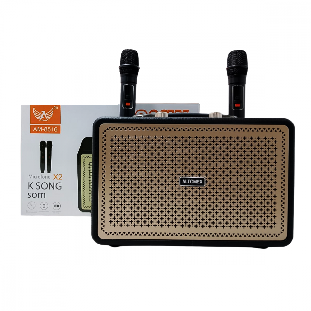 Caixa de Som Karaokê sem fio Bluetooth com 02 Microfones 200W PMPO Altomex AM-8516