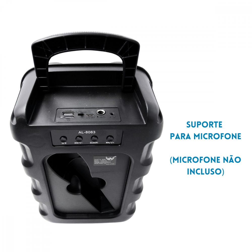 Caixa de Som LED RGB Bluetooth Entrada Microfone 5W 2000W PMPO Altomex AL-8063