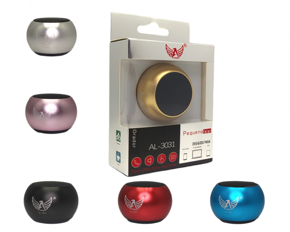 Caixa de som Mini Metal Bluetooth Sem Fio Portátil AL-3031/KA-8502 (***COR PRETO – ESGOTADO)