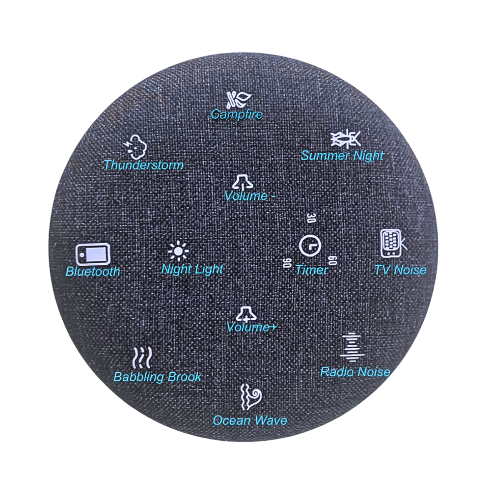 -Controles: Possui botões para ajustar o volume, selecionar os sons, controlar a luz e configurar o timer.