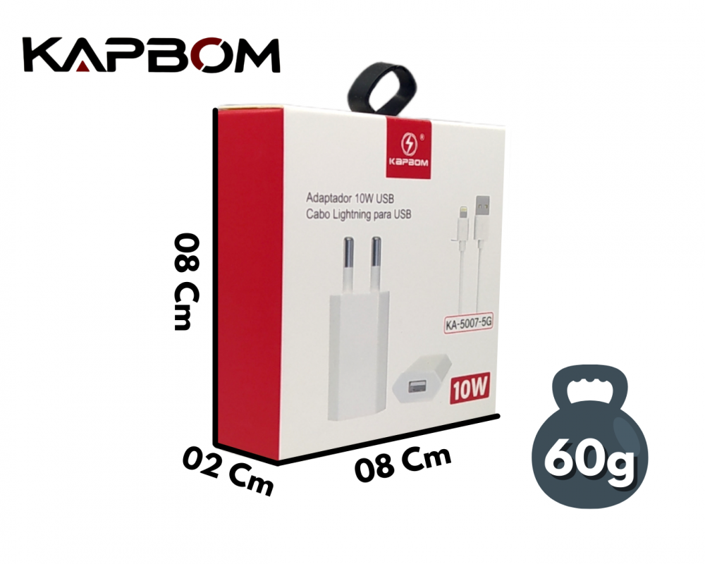 Carregador Completo 12W Cabo Móvel Lightning 1 Metro Kapbom KA-5007-5G