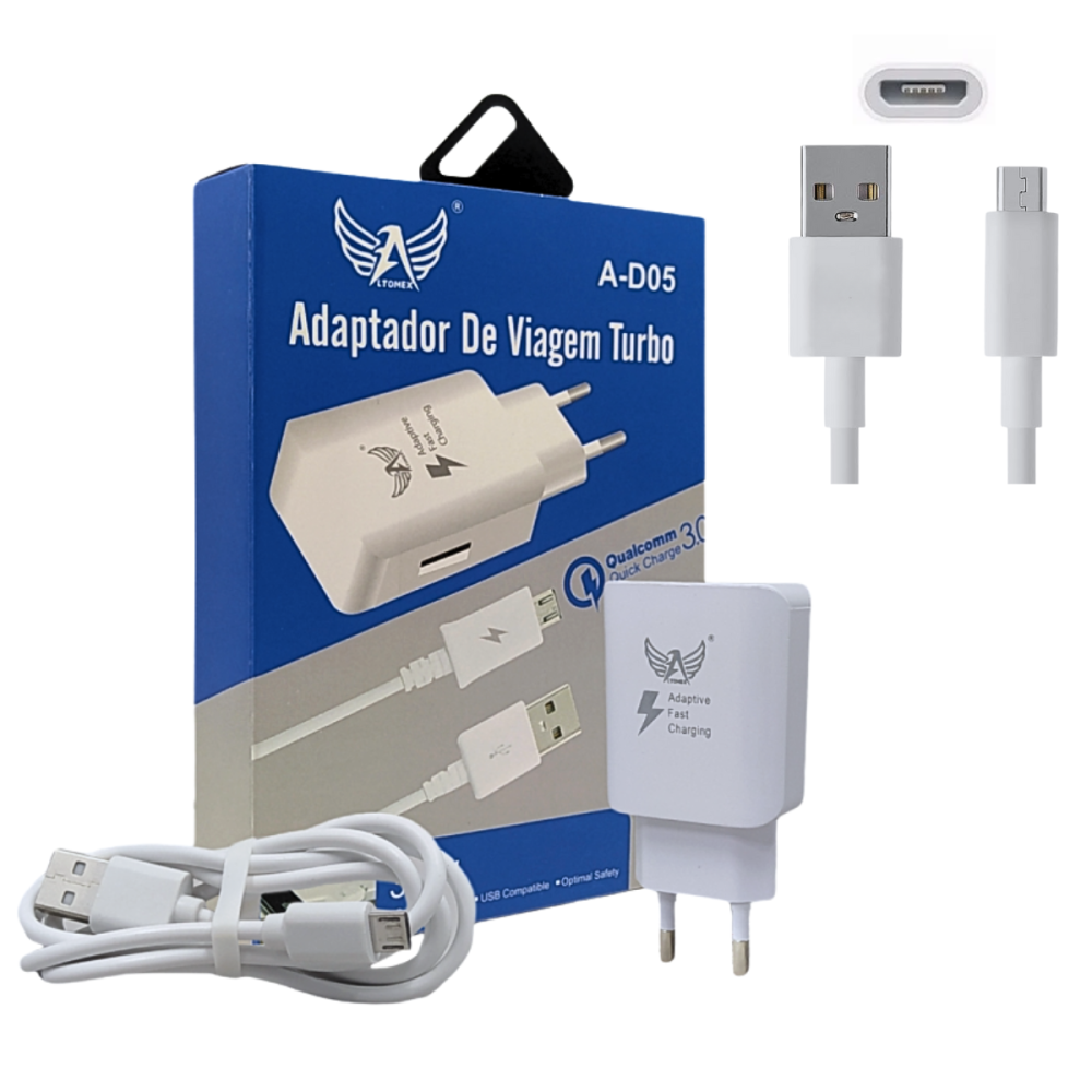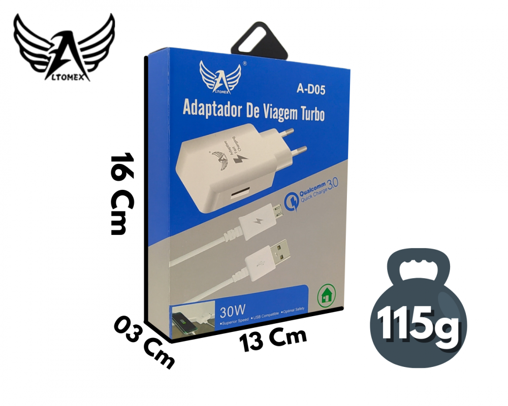 Carregador Completo 30W com Cabo Móvel V8 TURBO Altomex A-D05