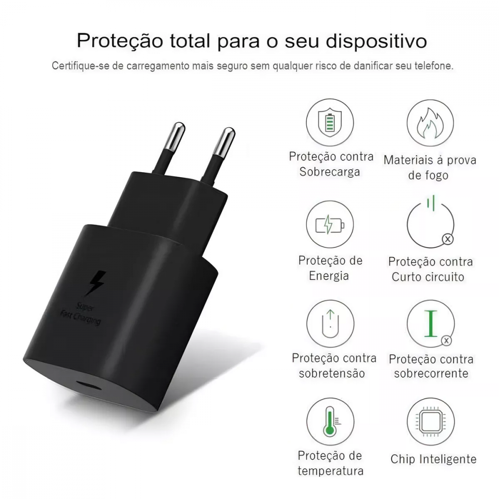 Carregador Completo Samsung TIPO-C / TIPO-C Super Rápido 2.0 25 W