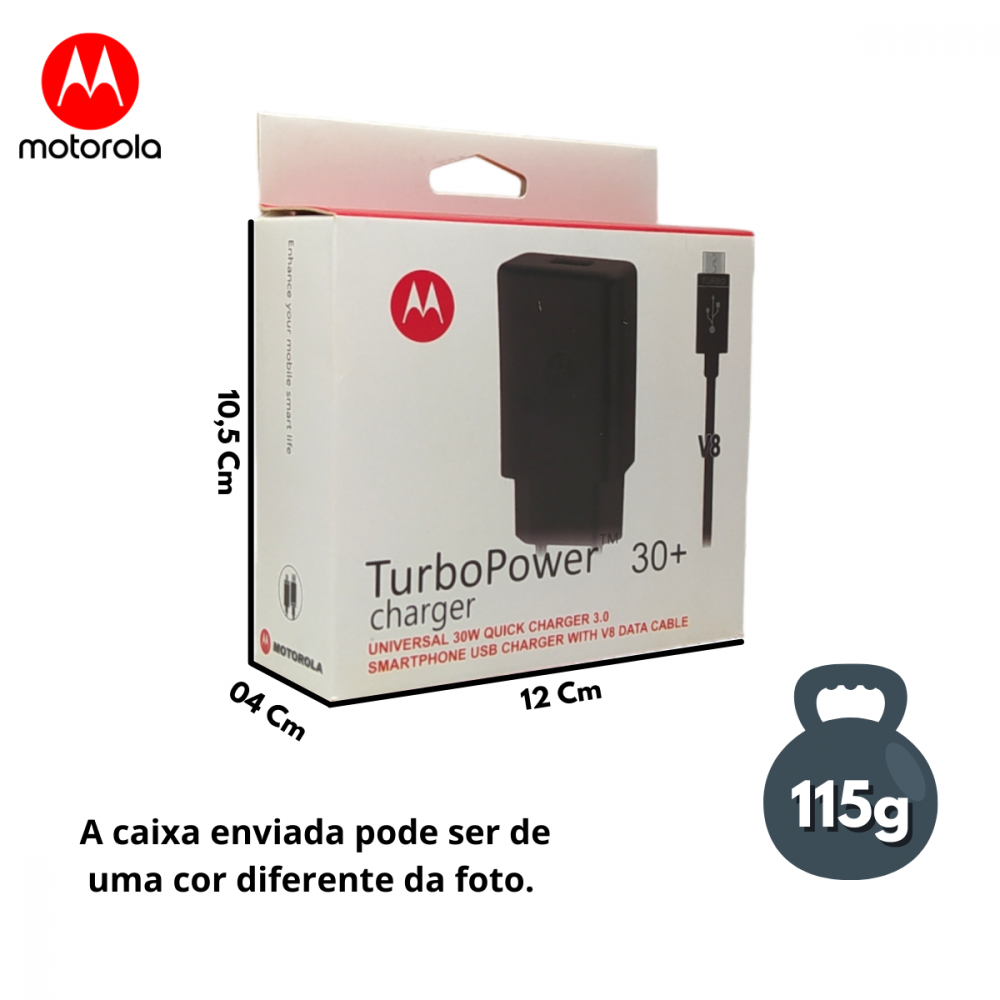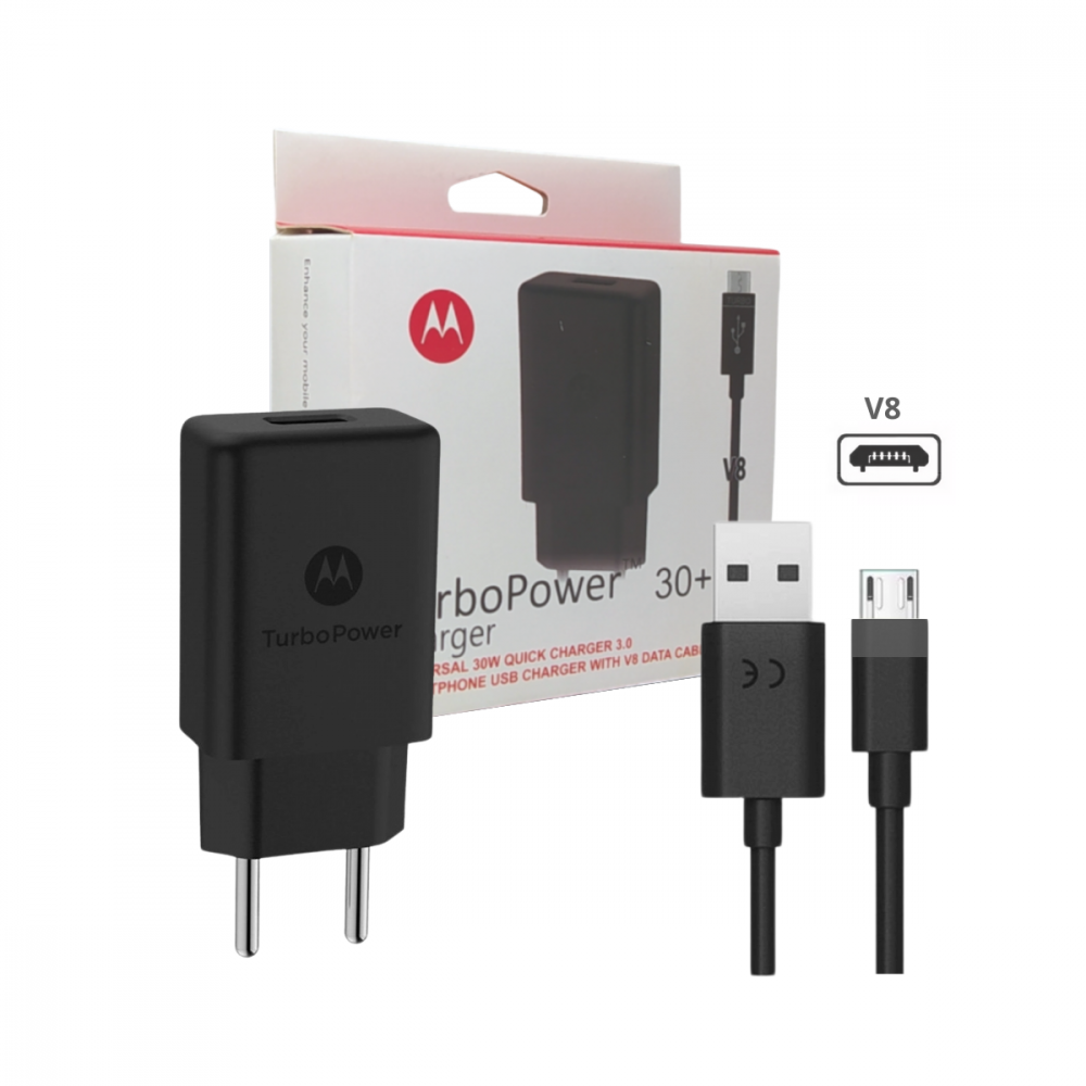 Carregador Completo Turbo Power 30W com cabo V8 Motorola
