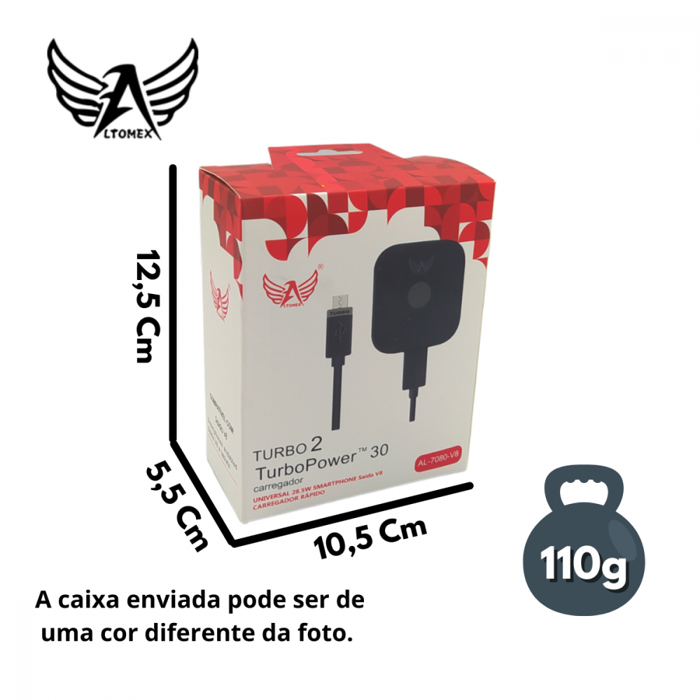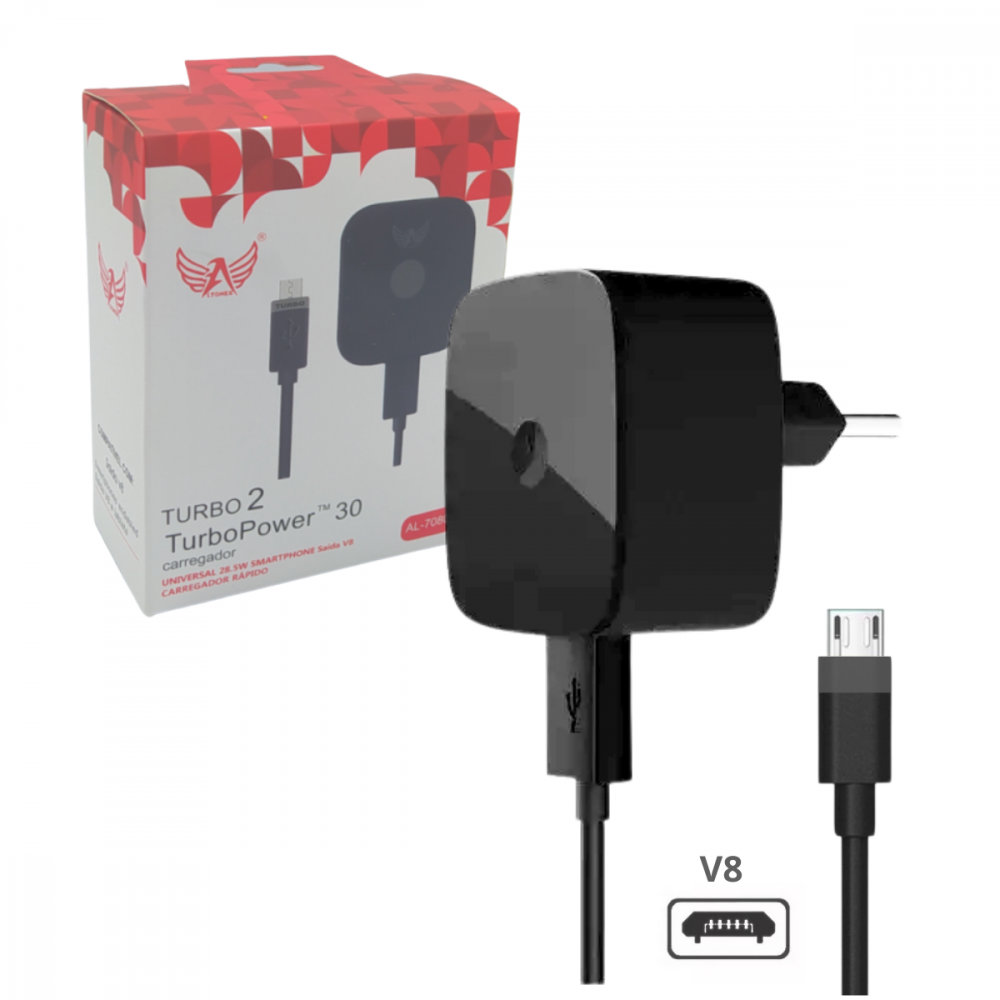 Em até 1x de R$29.99 sem juros Carregador Completo Turbo Power Cabo Móvel V8 Altomex AL-7080-V8