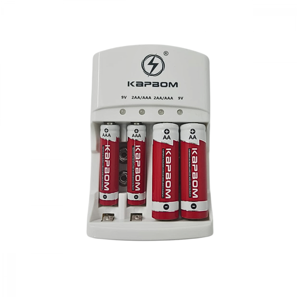 Carregador de Pilhas com LED + 02 Pilhas AAA + 02 Pilhas AA Recarregáveis Kapbom KA-1368