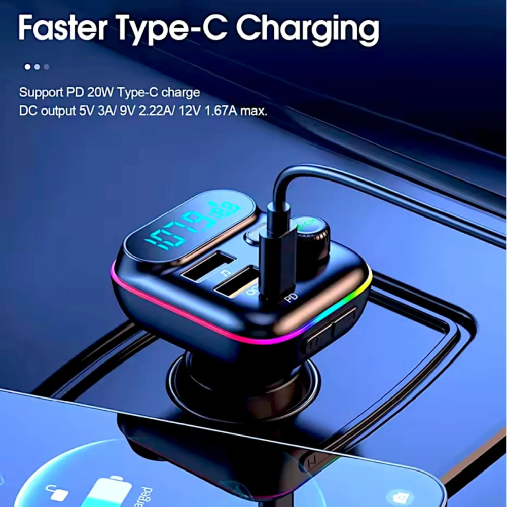 Carregador Transmissor Veicular com MP3 Player Bluetooth 5.1 RGB