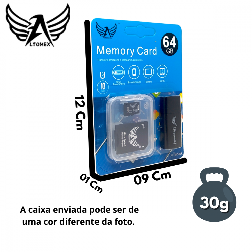 Em até 1x de R$12.99 sem juros Cartão de Memória 64GB Alta velocidade Com Adaptador SD E USB Altomex AL-MO-64