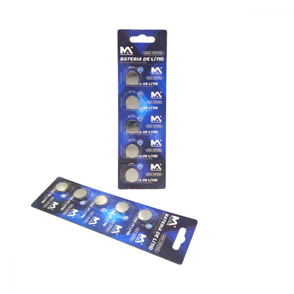 Cartela com 05 unidades de Bateria CR1632 Litio 3V Maxmidia MAX-CR1632