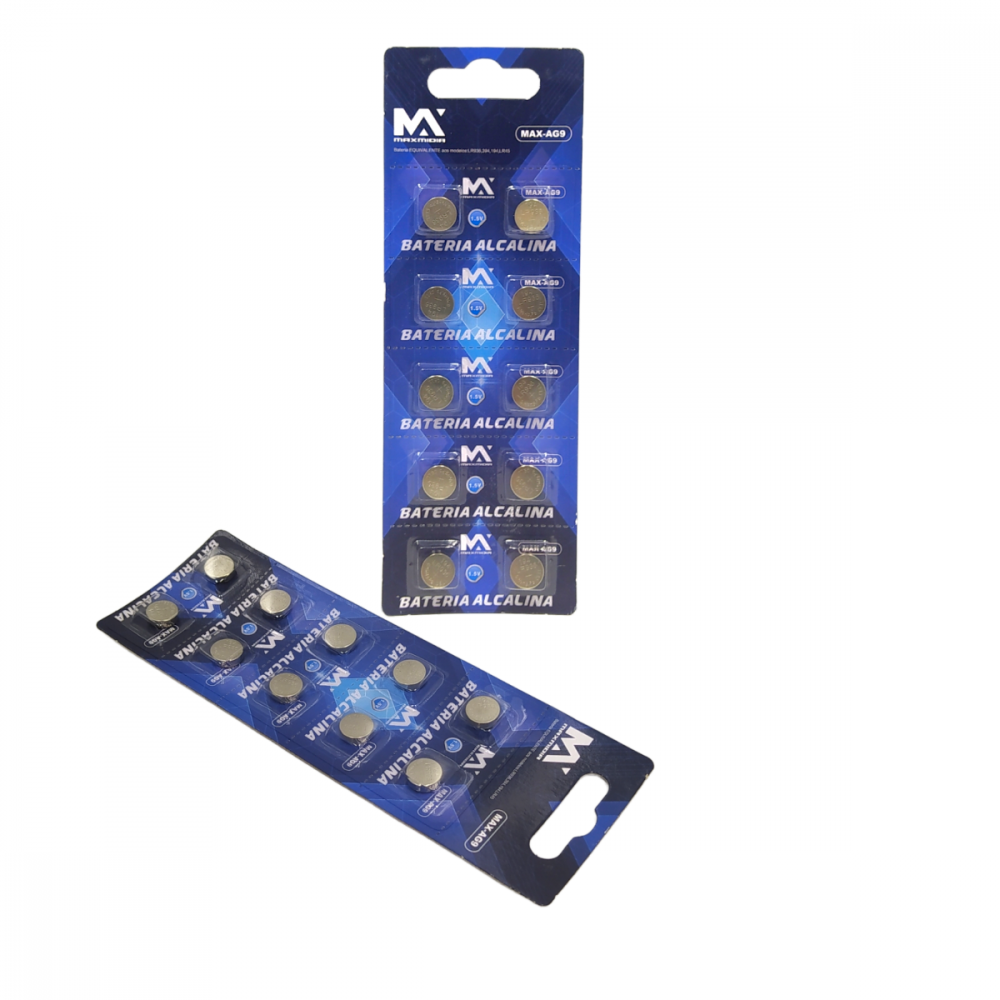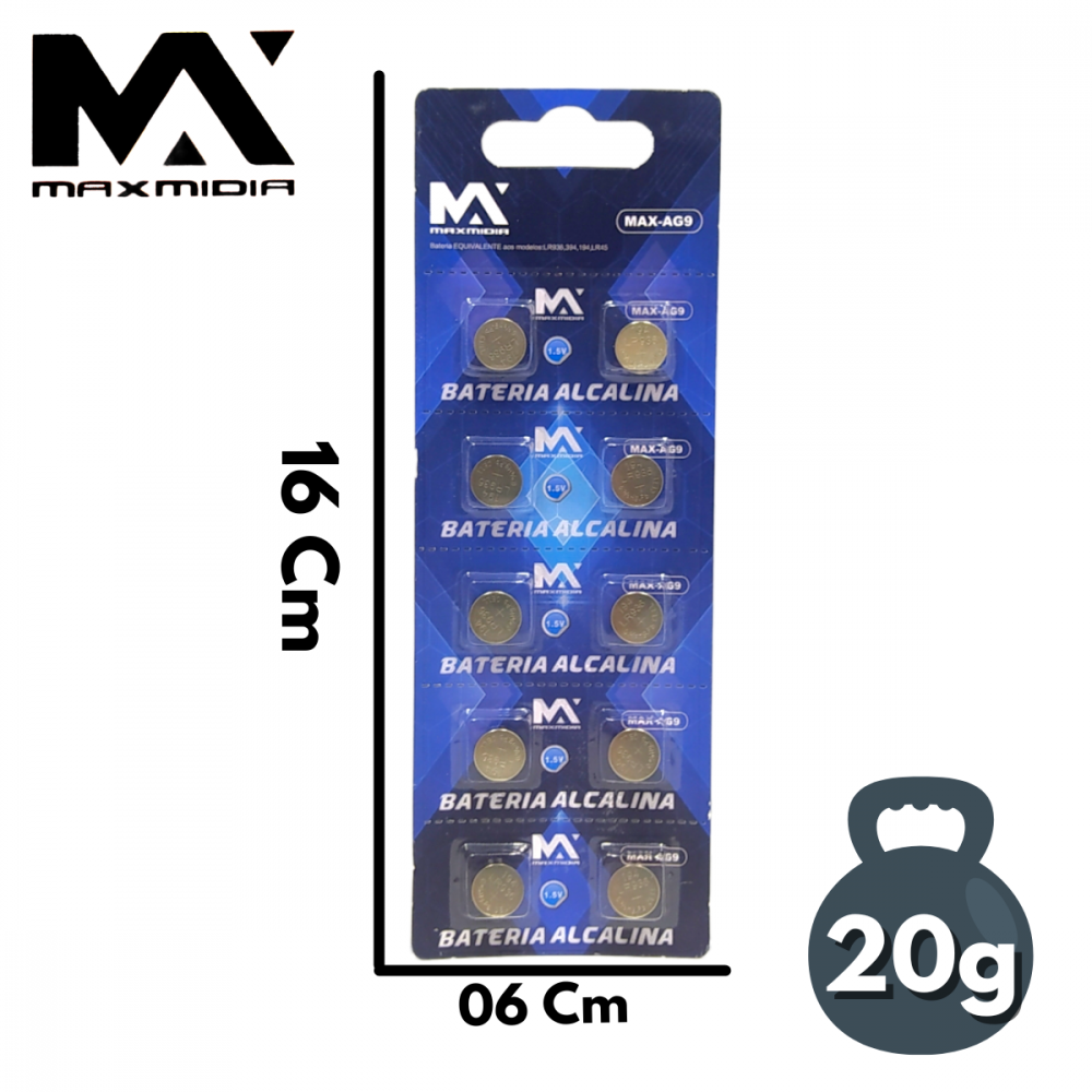 Cartela com 10 unidades de Bateria AG9 Litio 1.5V Maxmidia MAX-AG9