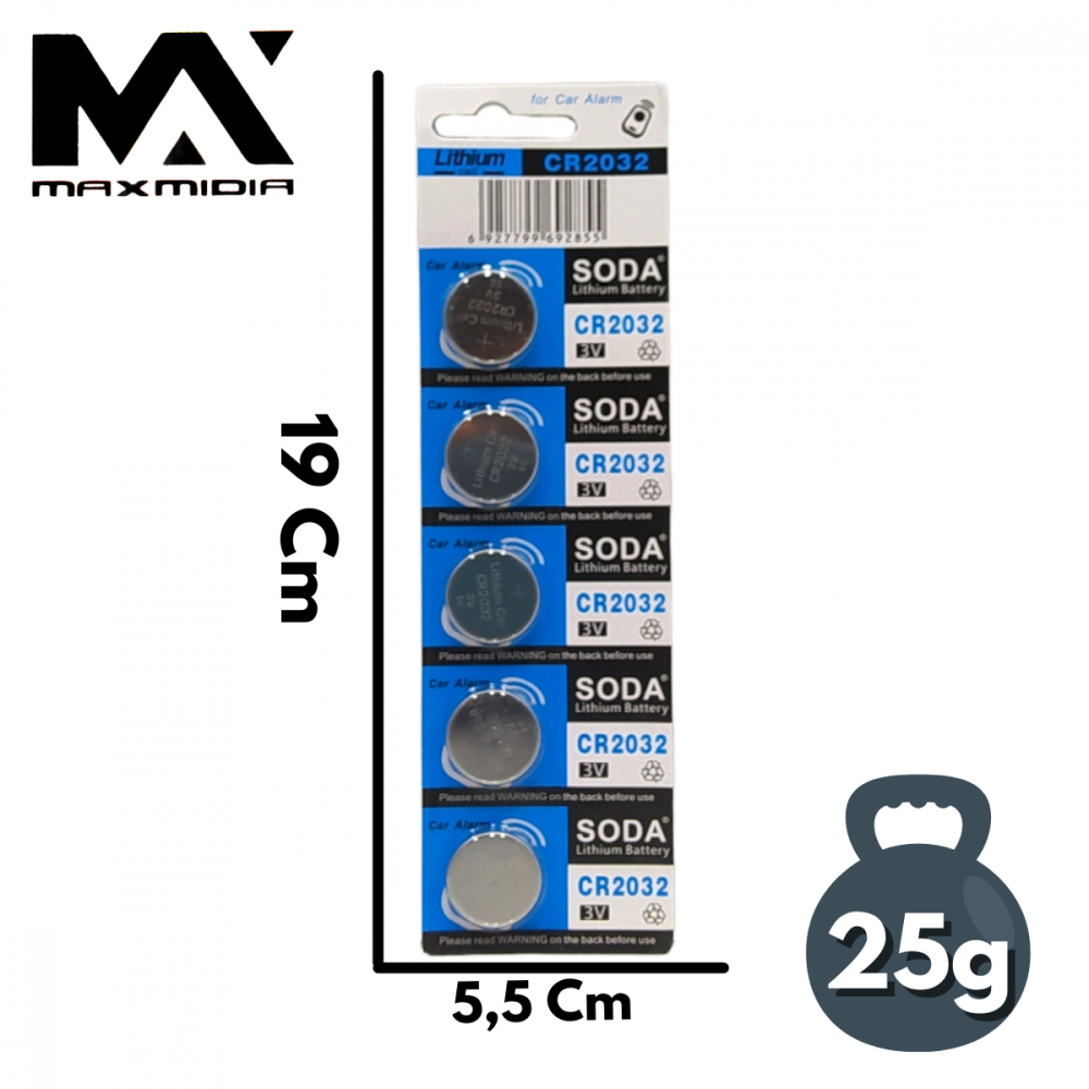Cartela com 5 unidades de Bateria CR2032 Litio 3V Maxmidia MAX-CR2032