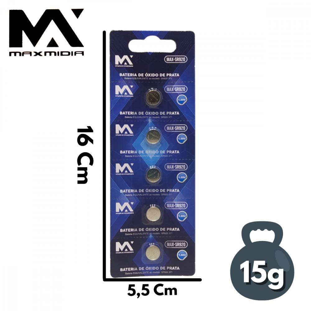 Cartela com 5 unidades de Bateria SR920 Litio 1.5V Maxmidia MAX-SR920