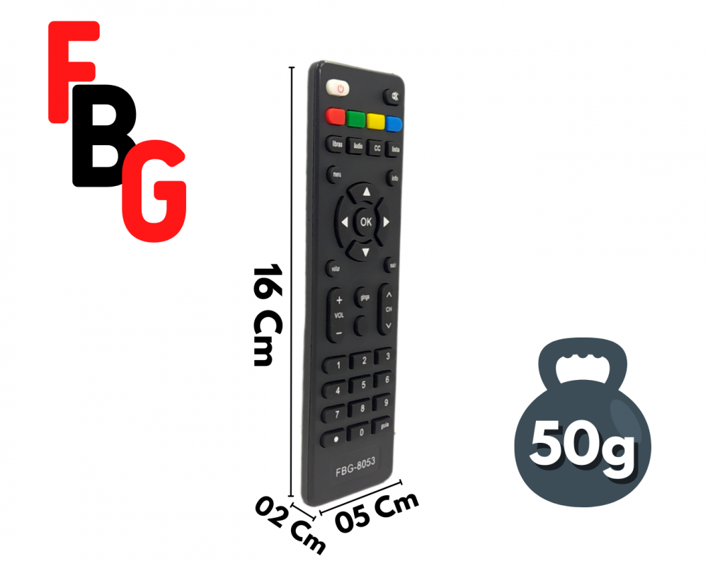 O Controle Remoto Compatível com Conversor Positivo Multilaser e Intelbras FBG-8053 é um controle remoto projetado para funcionar com diversos modelos de conversores digitais das marcas Positivo, Multilaser e Intelbras.