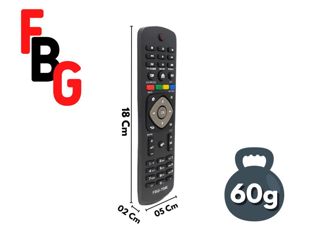 O Controle Remoto Compatível com TV Philips Smart 4K LCD LED FBG-7096 é um controle remoto projetado para funcionar com diversos modelos de Smart TVs 4K LCD e LED da Philips.