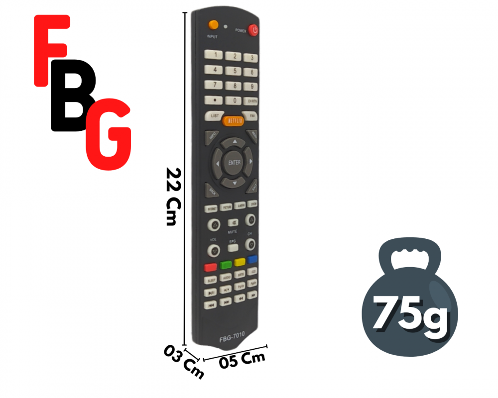 O Controle Remoto TV Compatível SMART LCD Semp Toshiba com botão Netflix FBG-7010 é um controle remoto projetado para funcionar com diversos modelos de Smart TVs LCD e LED das marcas Semp e Toshiba que possuem um botão dedicado para acesso direto ao aplicativo Netflix.