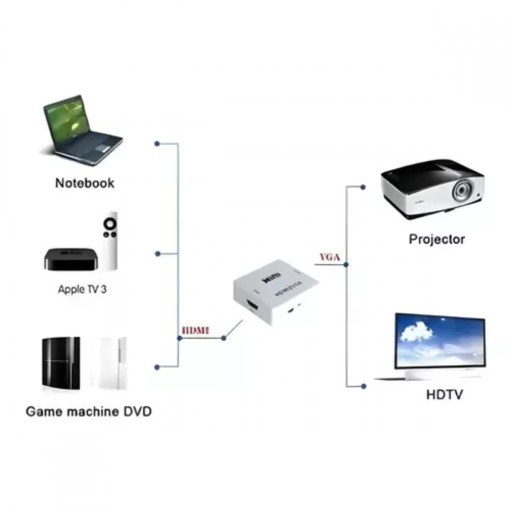-Vale ressaltar que o aparelho não converte o sinal de forma inversa, então ele apenas transforma o sinal HDMI em sinal VGA, não fazendo a função inversa.