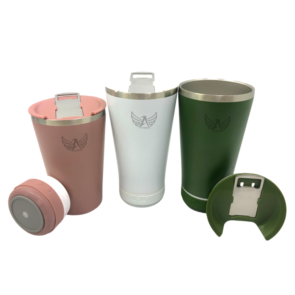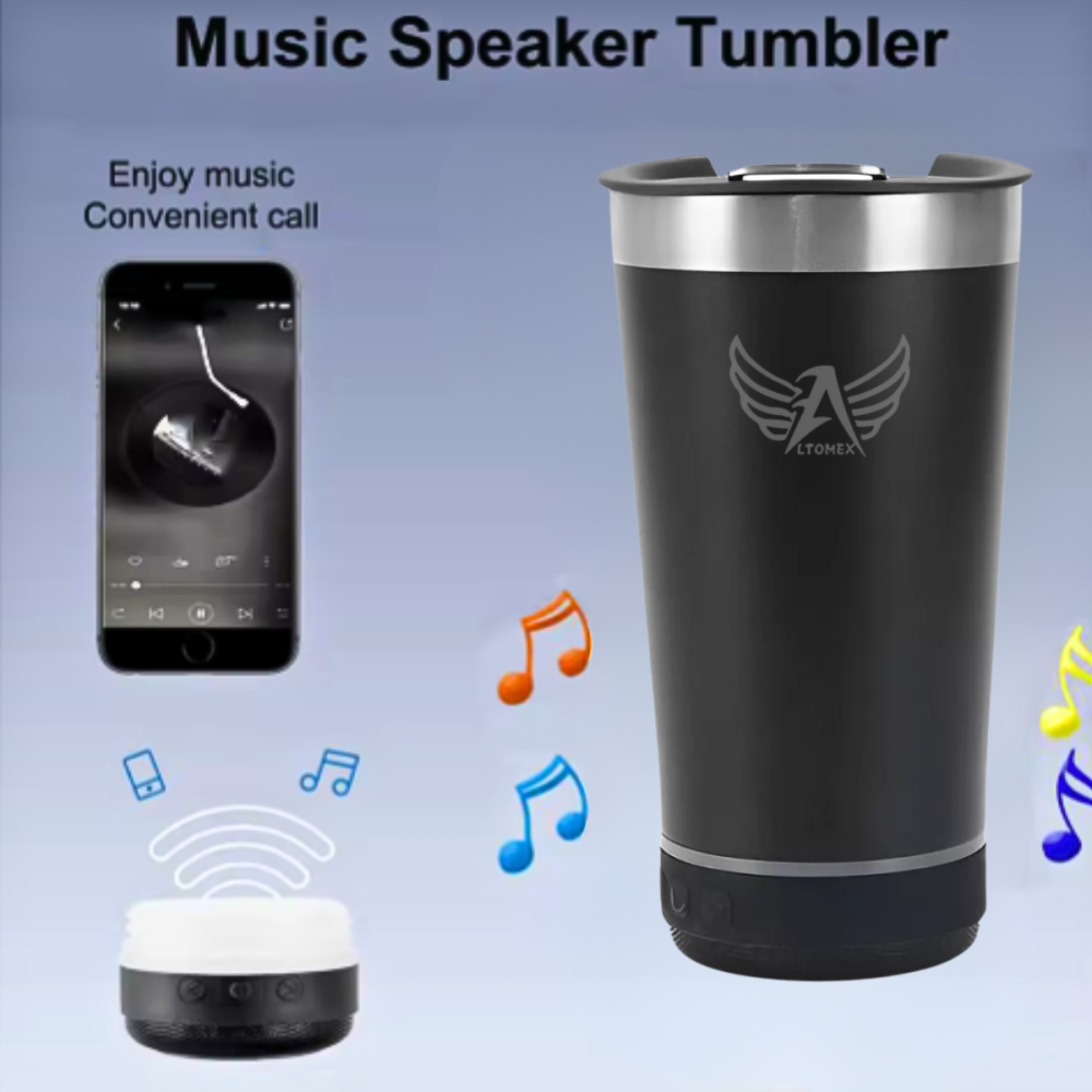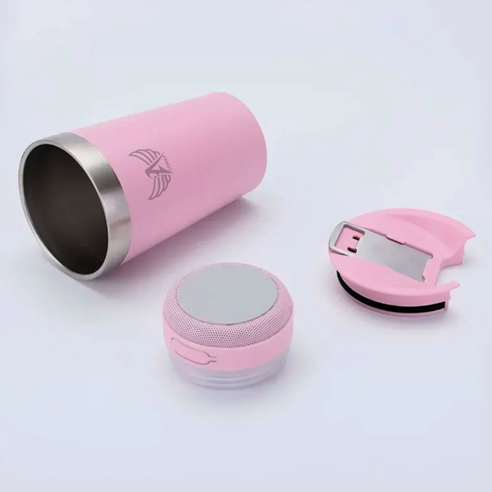 Copo Térmico Musical em Aço Inox 420 ml Caixa de Som Bluetooth Altomex AL-8260 (***DISPONÍVEL SOMENTE BRANCO, NUDE, LARANJA E PINK)