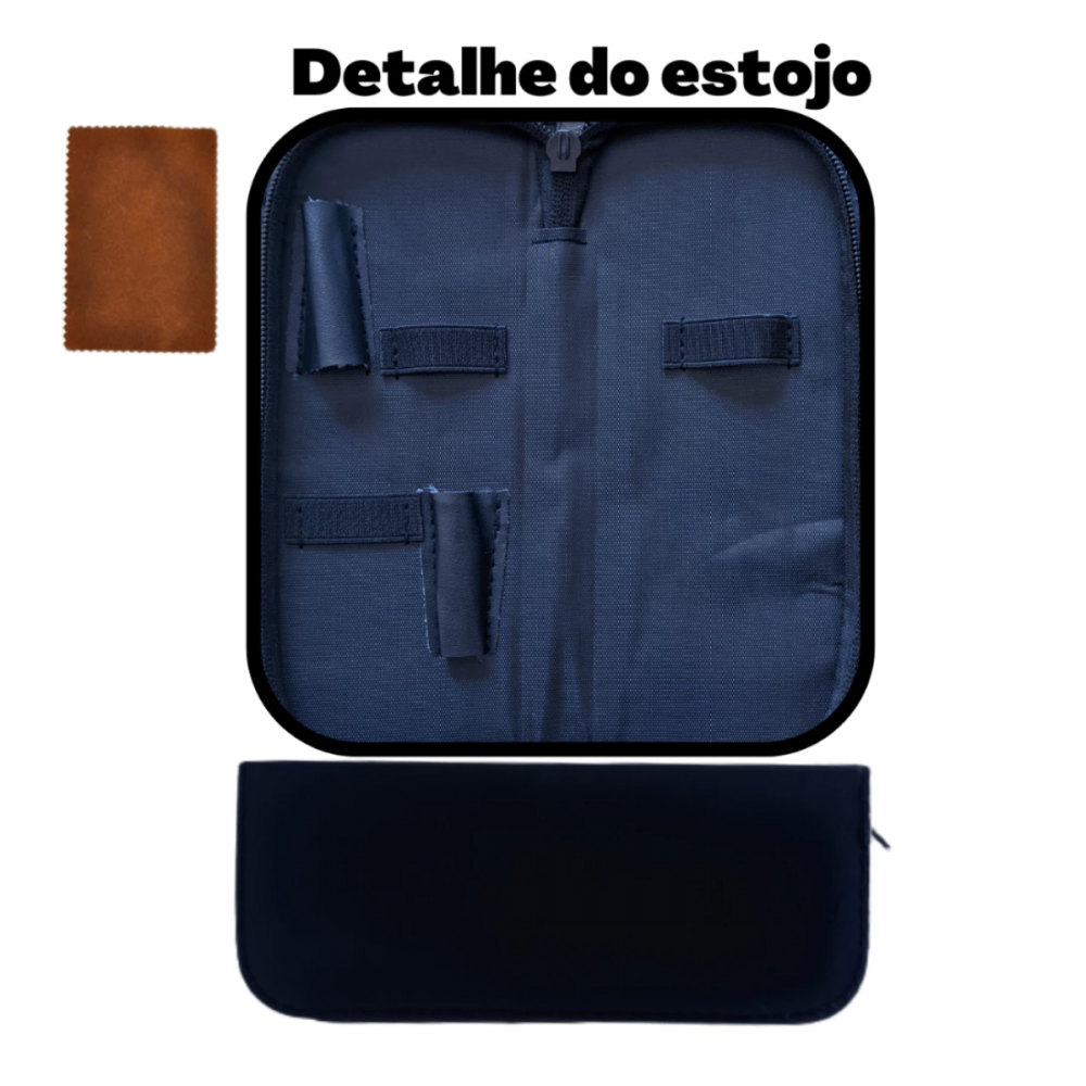 Kit acompanha um estojo de pequeno porte, fácil de ser carregado para qualquer lugar, compacto e leve