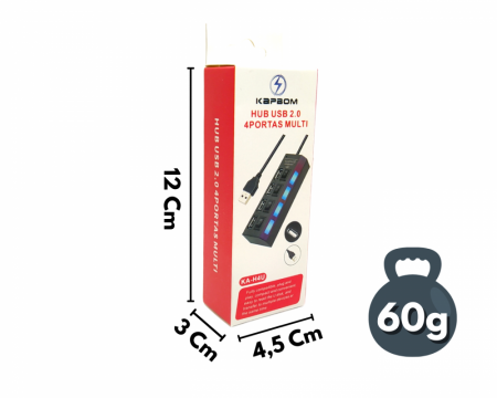 Em até 1x de R$12.49 sem juros Extensor Adaptador Hub USB 4 Portas Kapbom KA-H4U