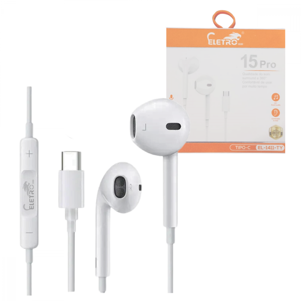 Fone De Ouvido Com Fio e Microfone TIPO-C Versão 15 Pro Eletromex EL-1411-TY