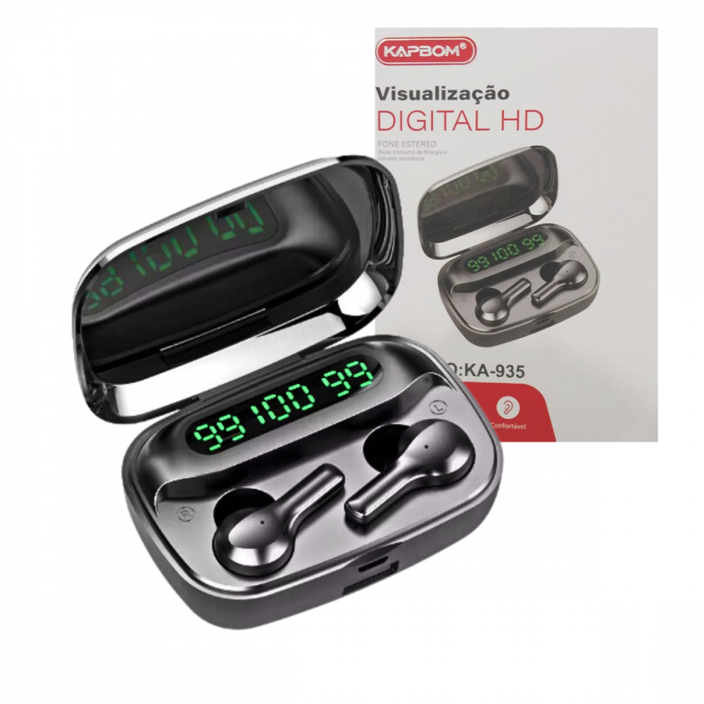 Fone de Ouvido Intra Auricular Bluetooth com Case de Carregamento LED Kapbom KA-935