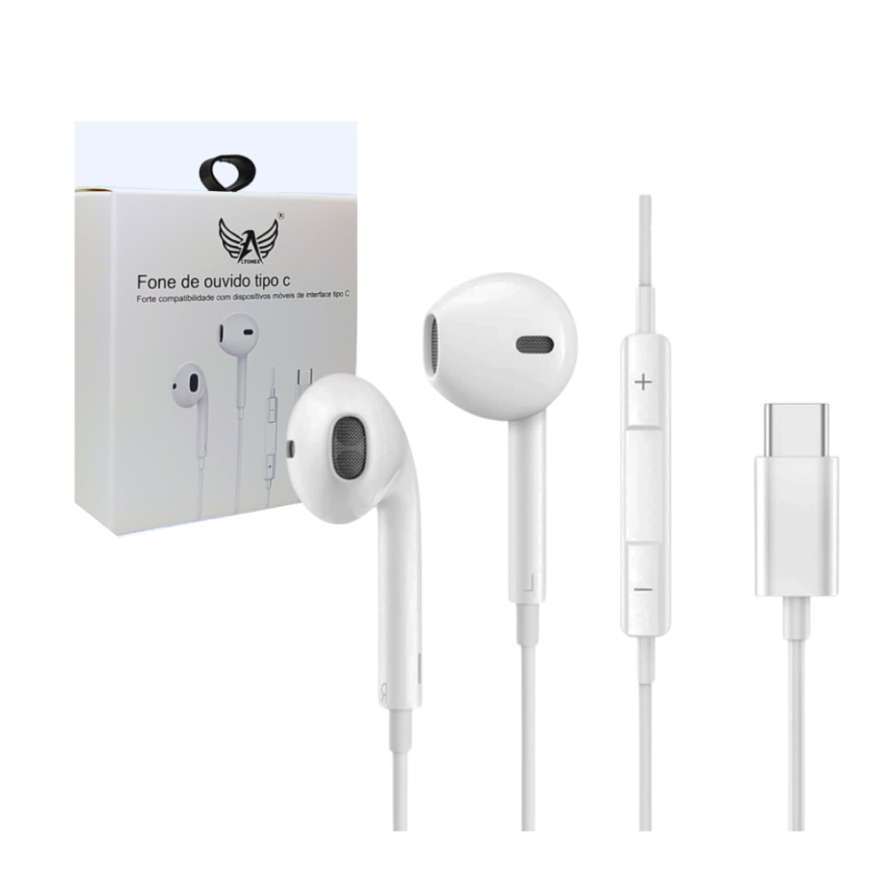 Fone de Ouvido Intra Auricular Com Fio e Microfone Controle de Volume Conexão TIPO-C