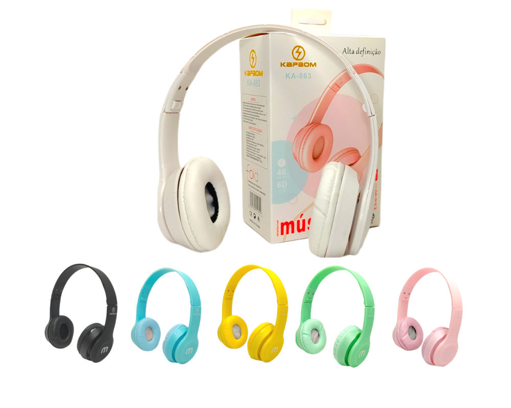 Fone Estéreo com Fio Kapbom KA-863 (Disponível somente 09 rosa e 05 branco)