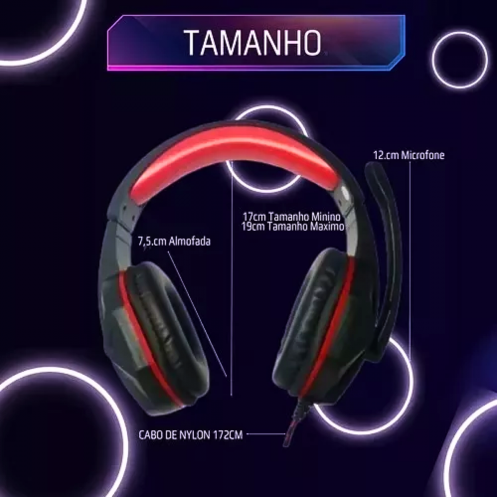 Fone Headset Gamer com Fio e Microfone Ajustável Conexão USB Luz LED XSoldado GH-X1800 (***DISPONÍVEL SOMENTE VERMELHO)