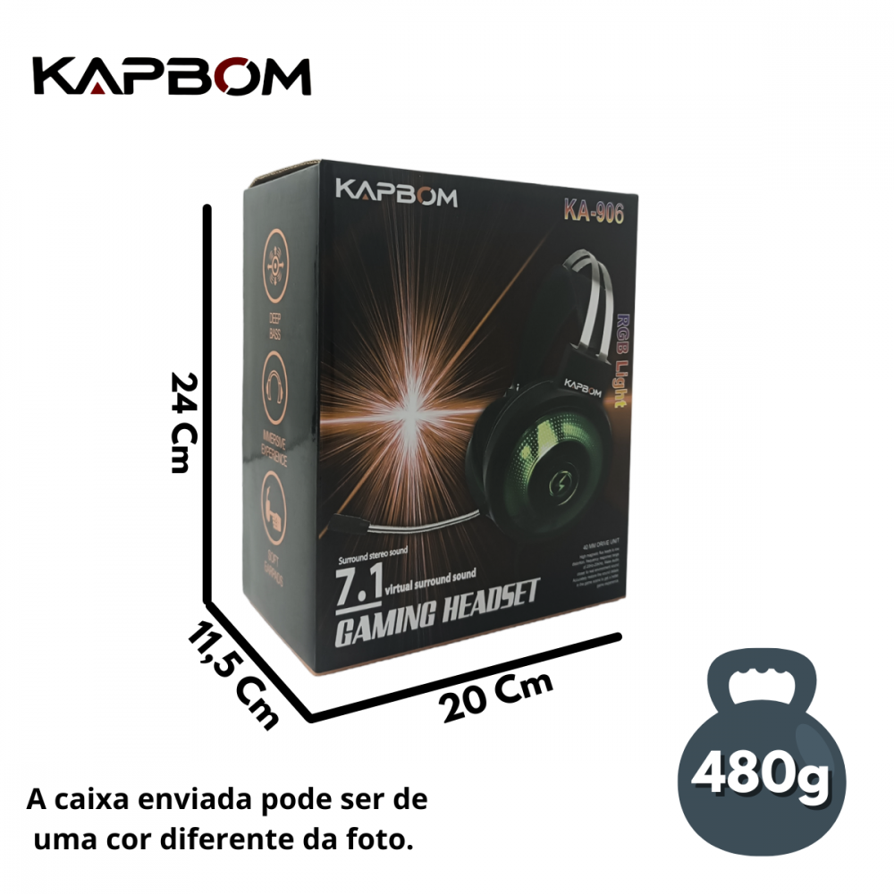 Fone Headset Gamer com Fio e Microfone Ajustável Conexão USB / P2 Kapbom KA-906