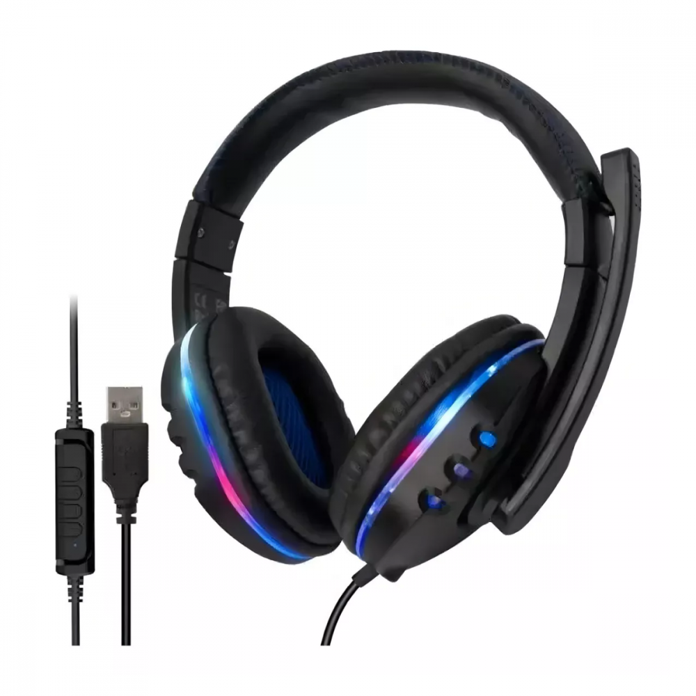 Fone Headset Gamer com Fio e Microfone Estéreo LED Ajustável Conexão USB