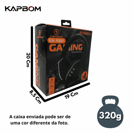 Fone Headset Gamer com Fio e Microfone Estéreo LED Ajustável Conexão USB Kapbom KA-9007
