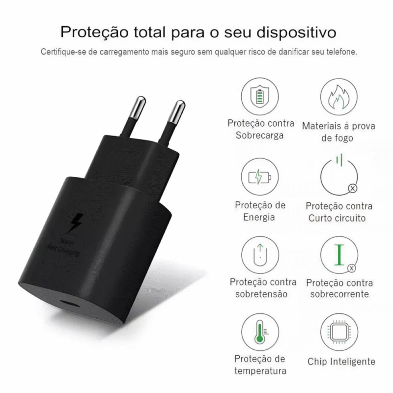 A carcaça externa é feita de um material resistente a chamas, o que significa que você pode usar o carregador com segurança em qualquer ambiente. Além disso, o material interno é fabricado com componentes eletrônicos de qualidade premium, garantindo um carregamento estável e seguro.