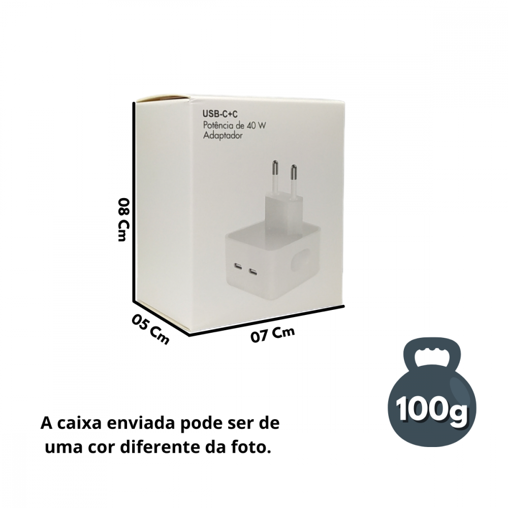 Fonte de Carregamento com 02 Portas USB TIPO-C 40W