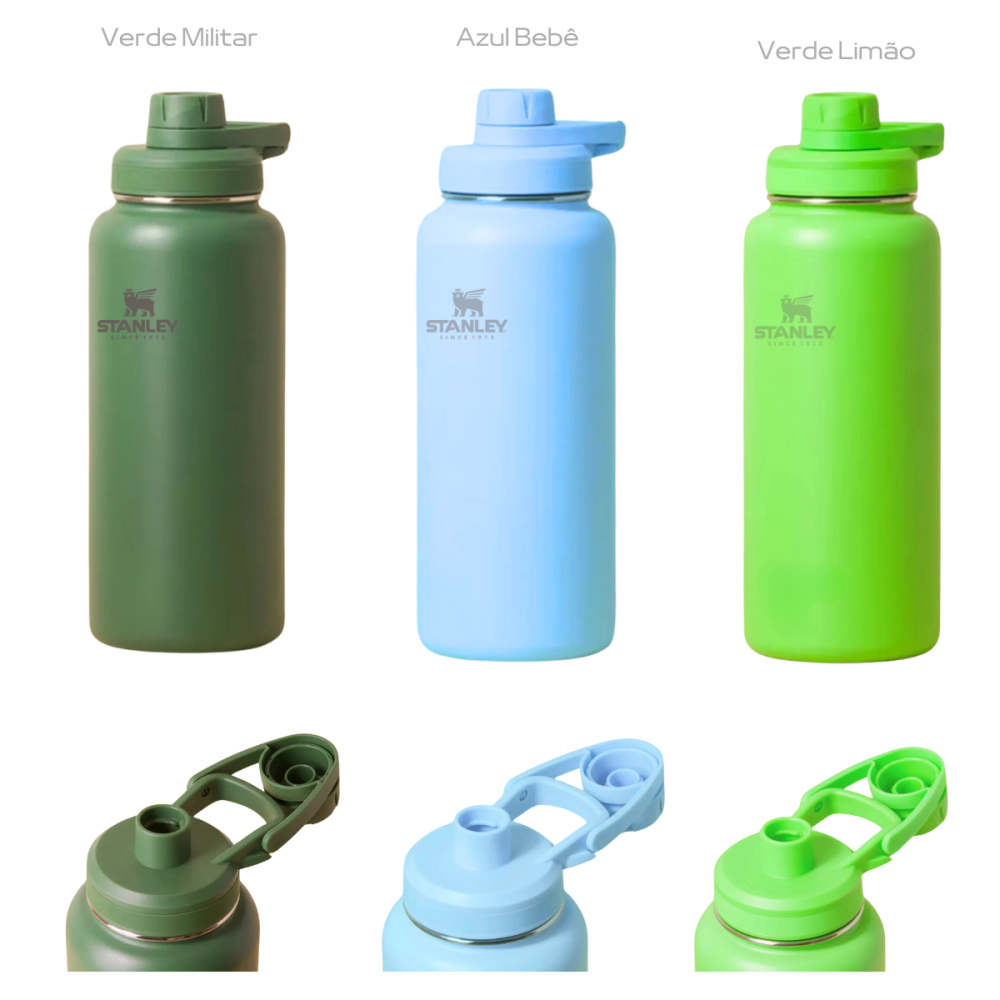 Garrafa Squeeze 950 ml Logo Stan. de Aço Inox Térmica com Alça Tampa Rosquear