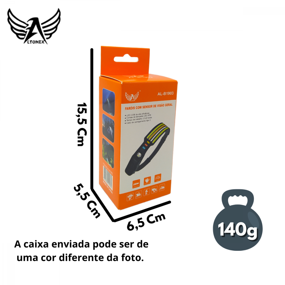Em até 3x de R$32.00 sem juros Lanterna de Cabeça Farol Super LED COB com Sensor Altomex AL-B1903